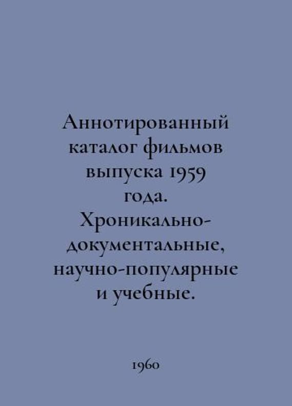 Annotated catalogue of films released in 1959. Chronicles-documentary, popular science, and educational. In Russian /Annotirovannyy katalog filmov vypuska 1959 goda. Khronikalno-dokumentalnye, nauchno-populyarnye i uchebnye. M. Edition of the General Directorate of Cinematography and Film Distribution. 1960. You are welcome to reach out to us for a detailed description of the copies currently available. SKUalb4b28c49cc904e279.