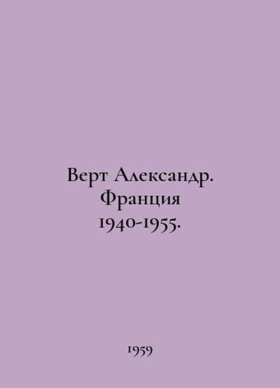Vert Alexander. France 1940-1955. In Russian /Vert Aleksandr. Frantsiya 1940-1955. M. Publishing House of Foreign Literature. 1959. You are welcome to reach out to us for a detailed description of the copies currently available. Delivery of this book may take longer than usual including extended processing and pre-shipping time, no expedited shipping is available. Please advise us if you have a set date or a deadline to receive your order.SKUalb4c2625ee9d48af00
