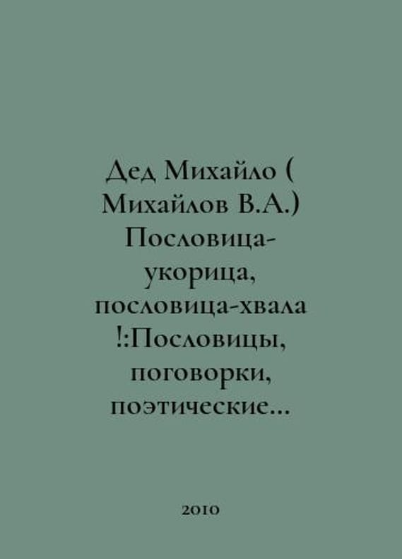 Grandfather Mikhailo (V.A. Mikhailov) Proverb-reproach, proverb-praise: Proverbs, proverbs, poetic metamorphoses. In Russian /Ded Mikhaylo ( Mikhaylov V.A.) Poslovitsa-ukoritsa, poslovitsa-khvala:Poslovitsy, pogovorki, poeticheskie metamorfozy. Irkutsk. Vostsibbook. 2010.You are welcome to reach out to us for a detailed description of the copies currently available. SKUalb4d1c43c87e1a322d.