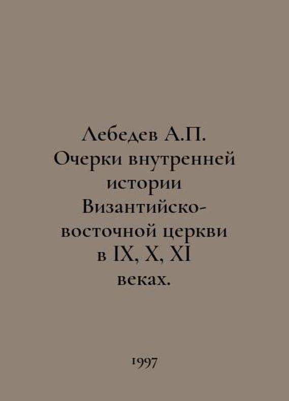 Lebedev A. Essays on the inner history of the Byzantine-Eastern Church in the ninth, tenth, and eleventh centuries. In Russian /Lebedev A. Ocherki vnutrenney istorii Vizantiysko- vostochnoy tserkvi v IX, X, XI vekakh. Reprint. A collection of ecclesiastical and historical works by Alexey Lebedev, Professor of Church History at Moscow University.You are welcome to reach out to us for a detailed description of the copies currently available. Delivery of this book may take longer than usual including extended processing and pre-shipping time, no expedited shipping is available. Please advise us if you have a set date or a deadline to receive your order. SKUalb4d3b223a21136e17
