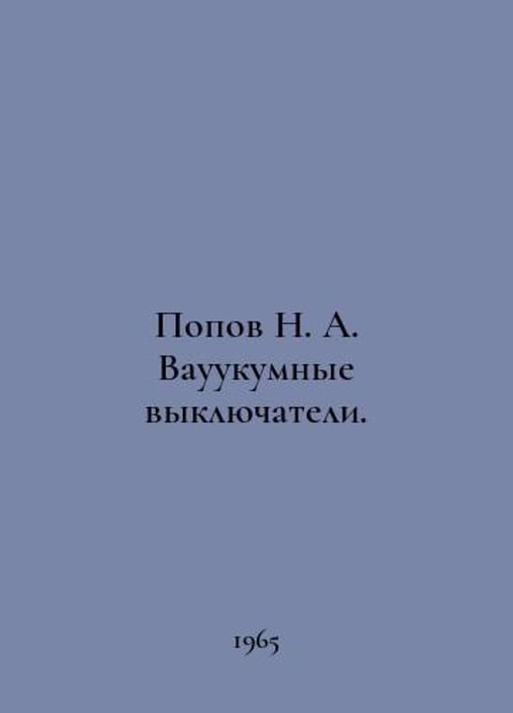 Popov N. A. Vauukum switches. In Russian /Popov N. A. Vauukumnye vyklyuchateli. M.-L.. Energy, 1965..You are welcome to reach out to us for a detailed description of the copies currently available. Delivery of this book may take longer than usual including extended processing and pre-shipping time, no expedited shipping is available. Please advise us if you have a set date or a deadline to receive your order. SKUalb4d45c9929308cf02