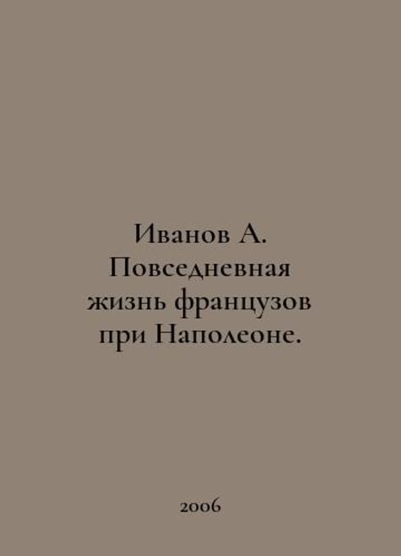 Ivanov A. Everyday life of the French under Napoleon. In Russian /Ivanov A. Povsednevnaya zhizn frantsuzov pri Napoleone. The Day-to-Day Life of Humanity series M. The Young Guard 2006. You are welcome to reach out to us for a detailed description of the copies currently available. Delivery of this book may take longer than usual including extended processing and pre-shipping time, no expedited shipping is available. Please advise us if you have a set date or a deadline to receive your order.SKUalb4d524b3a483755cd