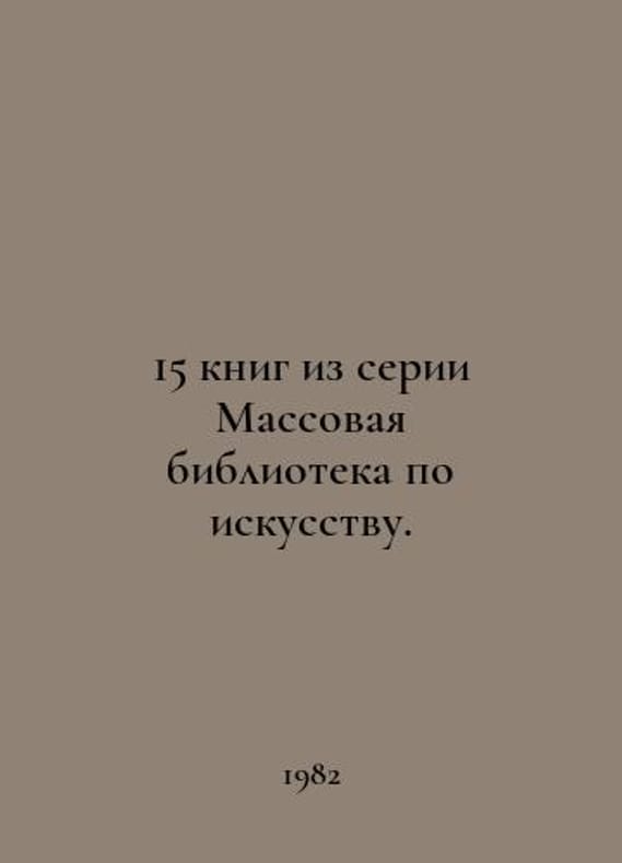 15 books from the Mass Library of Art series. In Russian /15 knig iz serii Massovaya biblioteka po iskusstvu. L. Artist of the RSFSR. 1982-1988. You are welcome to reach out to us for a detailed description of the copies currently available. Delivery of this book may take longer than usual including extended processing and pre-shipping time, no expedited shipping is available. Please advise us if you have a set date or a deadline to receive your order.SKUalb4dfced7ce55b031d