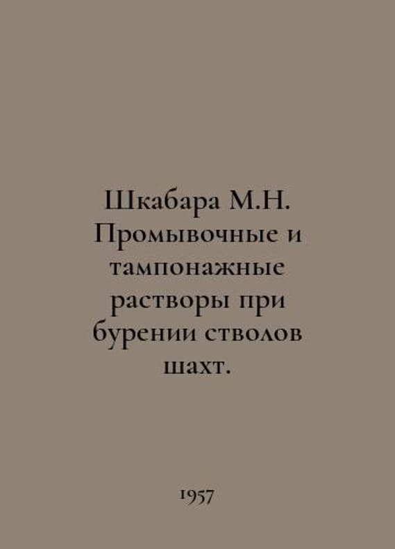 Closet of M.N. Wash and swab solutions when drilling shafts. In Russian /Shkabara M.N. Promyvochnye i tamponazhnye rastvory pri burenii stvolov shakht. Moscow Carbon Tekhizdat 1957.You are welcome to reach out to us for a detailed description of the copies currently available. SKUalb4e6f7d8db6248bb4.