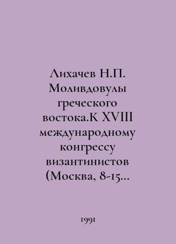 Likhachev N. Molydovuli of the Greek East. To the 18th International Congress of Byzantinists (Moscow, 8-15 August 1991). Scientific Heritage. Volume 19. In Russian /Likhachev N. Molivdovuly grecheskogo vostoka.K XVIII mezhdunarodnomu kongressu vizantinistov (Moskva, 8-15 avgusta 1991 g.). Nauchnoe Nasledstvo.Tom 19-y. Shandrovskaya V.S., Piotrovsky B.B. M.: Science. 1991. You are welcome to reach out to us for a detailed description of the copies currently available. Delivery of this book may take longer than usual including extended processing and pre-shipping time, no expedited shipping is available. Please advise us if you have a set date or a deadline to receive your order.SKUalb4e92929722deb177