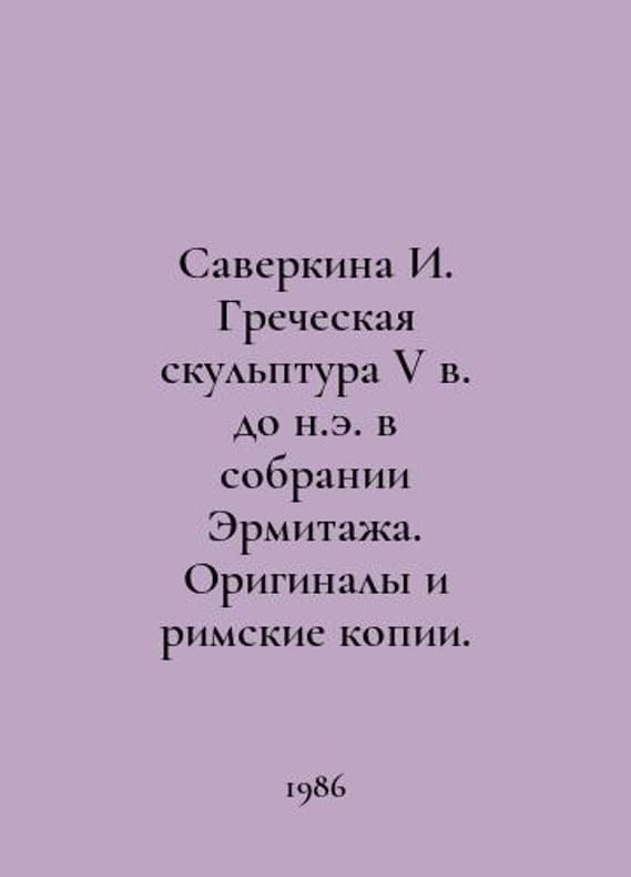 Saverkina I. Greek sculpture in the Hermitage collection, originals and Roman copies. In Russian /Saverkina I. Grecheskaya skulptura V v. do n.e. v sobranii Ermitazha. Originaly i rimskie kopii. Catalogue. L. Art. 1986 year. You are welcome to reach out to us for a detailed description of the copies currently available. Delivery of this book may take longer than usual including extended processing and pre-shipping time, no expedited shipping is available. Please advise us if you have a set date or a deadline to receive your order.SKUalb4f011c847113ac31