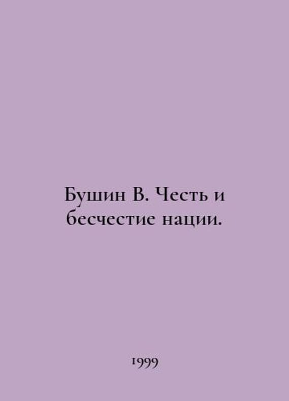 Bushin V. The Honor and Disgrace of the Nation. In Russian /Bushin V. Chest i beschestie natsii. M Republic 1999. You are welcome to reach out to us for a detailed description of the copies currently available. Delivery of this book may take longer than usual including extended processing and pre-shipping time, no expedited shipping is available. Please advise us if you have a set date or a deadline to receive your order.SKUalb4fb9aaa6cdca9798