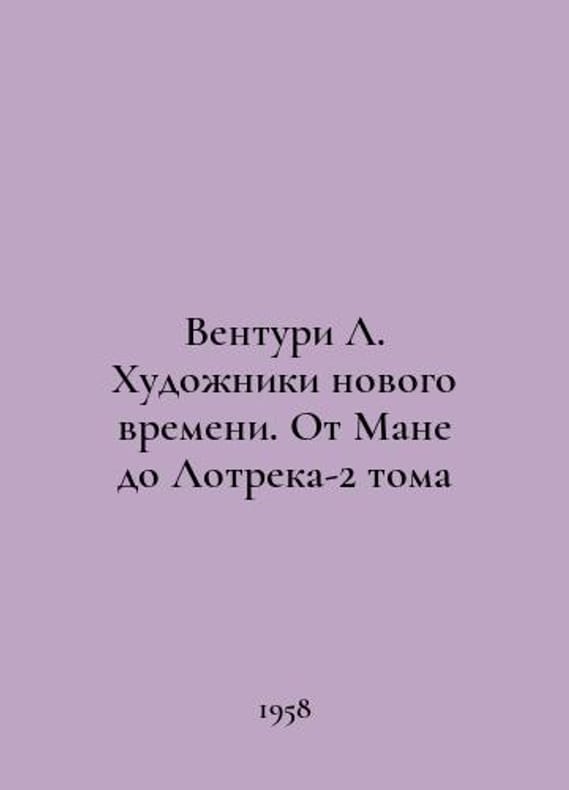 Venturi L. Painters of the New Age: From Manet to Lautrec Volume 2 In Russian /Venturi L. Khudozhniki novogo vremeni. Ot Mane do Lotreka-2 toma M. Foreign Literature 1956, 1958. You are welcome to reach out to us for a detailed description of the copies currently available. Delivery of this book may take longer than usual including extended processing and pre-shipping time, no expedited shipping is available. Please advise us if you have a set date or a deadline to receive your order.SKUalb509e513356d661b8