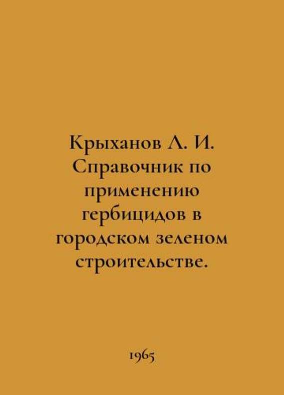 L.I. Krykhanovs Guide to the Use of Herbicides in Urban Green Construction. In Russian /Krykhanov L. I. Spravochnik po primeneniyu gerbitsidov v gorodskom zelenom stroitelstve. Moscow Stroyizdat 1965..You are welcome to reach out to us for a detailed description of the copies currently available. Delivery of this book may take longer than usual including extended processing and pre-shipping time, no expedited shipping is available. Please advise us if you have a set date or a deadline to receive your order. SKUalb50a1b626ede6c22a