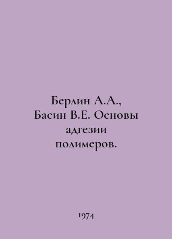 Berlin A.A., Basin V.E. Basics of Polymer Adhesion. In Russian /Berlin A.A., Basin V.E. Osnovy adgezii polimerov. Edition 2, revised and supplemented. Moscow Chemistry 1974..You are welcome to reach out to us for a detailed description of the copies currently available. Delivery of this book may take longer than usual including extended processing and pre-shipping time, no expedited shipping is available. Please advise us if you have a set date or a deadline to receive your order. SKUalb51c1611219d1001e