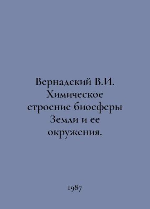 Vernadsky V. I. Chemical Structure of the Earths Biosphere and its Environs. In Russian /Vernadskiy V. I. Khimicheskoe stroenie biosfery Zemli i ee okruzheniya. Moscow Science 1965. 374s. We have thousands of titles and often several copies of each title may be available. Please feel free to contact us for a detailed description of the copies available. SKUalbe0e7a676f81f1624.