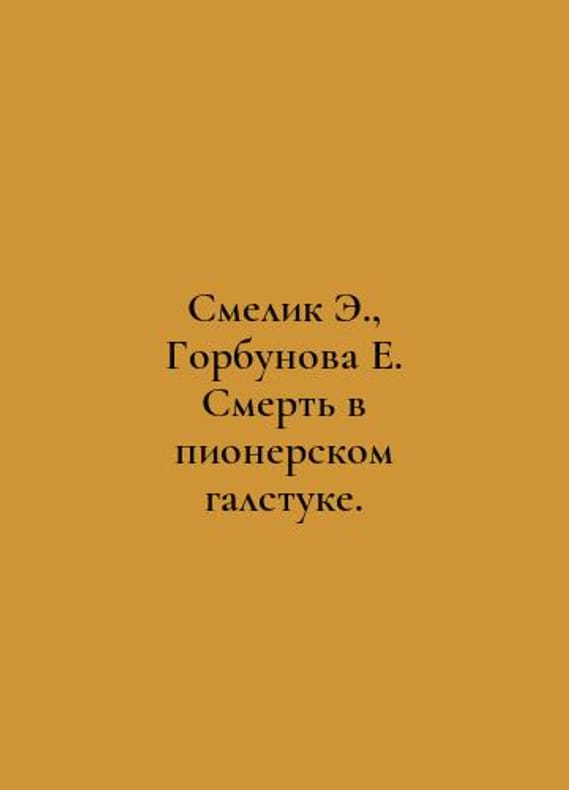 Smelik E., Gorbunova E. Death in Pioneer Tie. In Russian /Smelik E., Gorbunova E. Smert v pionerskom galstuke. Smelik E., Gorbunova E. Death in Pioneer Tie..You are welcome to reach out to us for a detailed description of the copies currently available. Delivery of this book may take longer than usual including extended processing and pre-shipping time, no expedited shipping is available. Please advise us if you have a set date or a deadline to receive your order. SKUalb52cc29b7108251f6