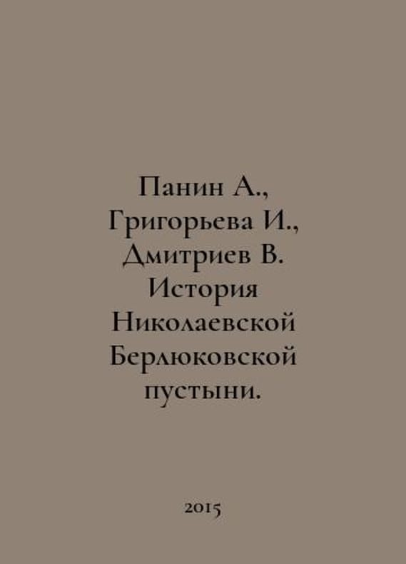 Panin A., Grigoryeva I., Dmitriev V. History of the Nikolaev Berlyukov Desert. In Russian /Panin A., Grigoreva I., Dmitriev V. Istoriya Nikolaevskoy Berlyukovskoy pustyni. Third Korolev Edition, Moscow Region Charitable Fund Revival of Cultural Heritage. 2015..You are welcome to reach out to us for a detailed description of the copies currently available. Delivery of this book may take longer than usual including extended processing and pre-shipping time, no expedited shipping is available. Please advise us if you have a set date or a deadline to receive your order. SKUalb53e049414199ed80