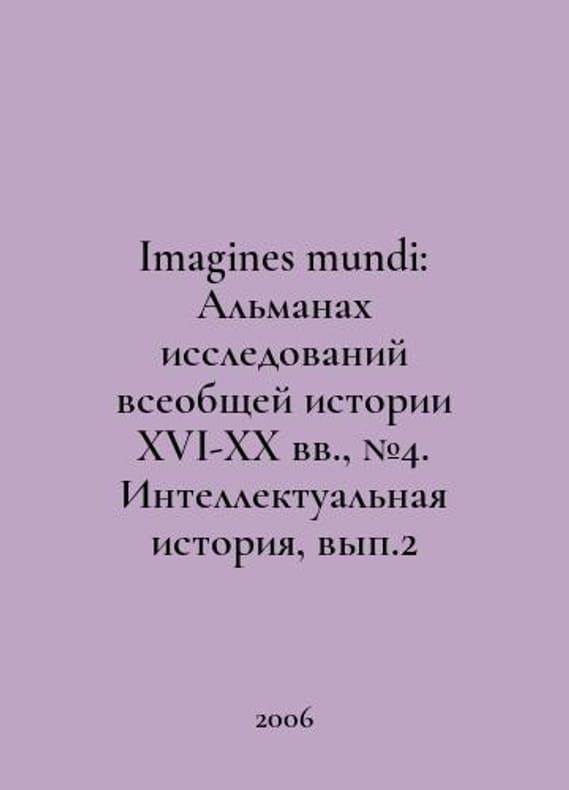 Imagines mundi: Almanac of Research on the General History of the 16th-20th Centuries, # 4. Intellectual History, vol. 2 In Russian /Imagines mundi: Almanakh issledovaniy vseobshchey istorii XVI-XX vv., #4. Intellektualnaya istoriya, vyp.2 Yekaterinburg 2006. You are welcome to reach out to us for a detailed description of the copies currently available. Delivery of this book may take longer than usual including extended processing and pre-shipping time, no expedited shipping is available. Please advise us if you have a set date or a deadline to receive your order.SKUalb55497a50c636a787