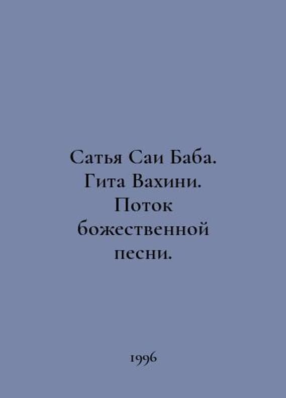 Sathya Sai Baba. Gita Vahini. The Stream of Divine Song. In Russian /Satya Sai Baba. Gita Vakhini. Potok bozhestvennoy pesni. St. Petersburg Sathya Sai Center. 1996. You are welcome to reach out to us for a detailed description of the copies currently available. Delivery of this book may take longer than usual including extended processing and pre-shipping time, no expedited shipping is available. Please advise us if you have a set date or a deadline to receive your order.SKUalb5708294ddae736b6