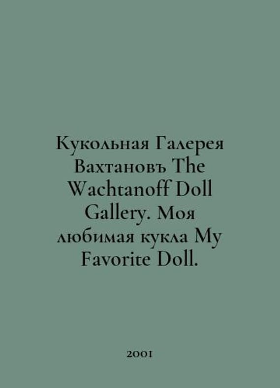 The Wachtanoff Doll Gallery. My Favorite Doll. In Russian /Kukolnaya Galereya Vakhtanov The Wachtanoff Doll Gallery. Moya lyubimaya kukla My Favorite Doll. In Russian and English, M. 2001.You are welcome to reach out to us for a detailed description of the copies currently available. SKUalb575c961c5fb91b57.