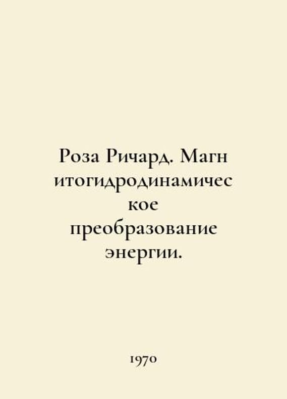 Rosa Richard. Magnetohydrodynamic energy conversion. In Russian /Roza Richard. Magnitogidrodinamicheskoe preobrazovanie energii. Translated from English. Edited by A.V.Gubarev. M. Mir. 1970.You are welcome to reach out to us for a detailed description of the copies currently available. SKUalb580459ed1bf9af25.