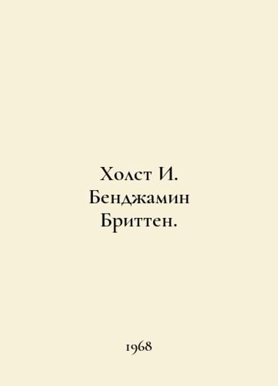 I. Benjamin Brittens Canvas. In Russian /Kholst I. Bendzhamin Britten. M. Muzyka. 1968. You are welcome to reach out to us for a detailed description of the copies currently available. Delivery of this book may take longer than usual including extended processing and pre-shipping time, no expedited shipping is available. Please advise us if you have a set date or a deadline to receive your order.SKUalb58493154eea78722