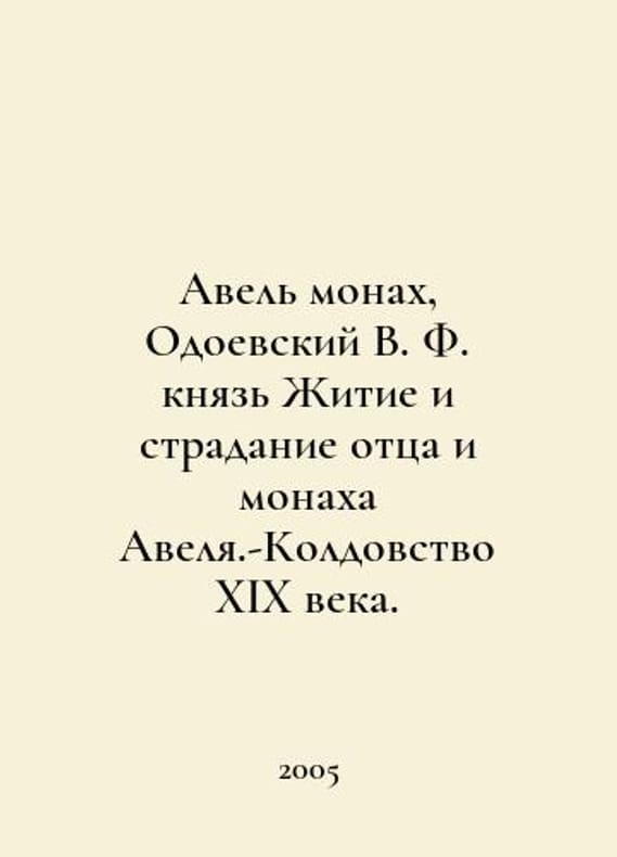 Abel monk, V.F. Odoevsky prince The life and suffering of the father and monk of Abel - Witchcraft of the nineteenth century. In Russian /Avel monakh, Odoevskiy V. F. knyaz Zhitie i stradanie ottsa i monakha Avelya.-Koldovstvo XIX veka. M. Special book 2005.You are welcome to reach out to us for a detailed description of the copies currently available. SKUalb5859f39e9a0c2b4e.