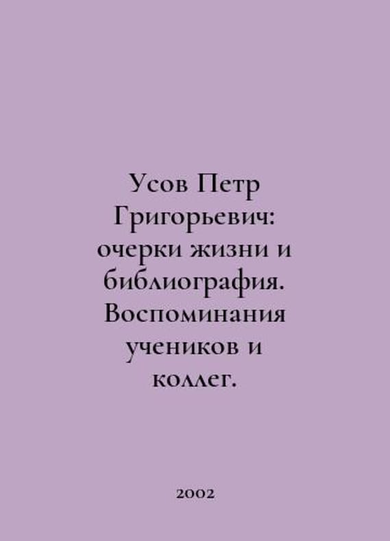 Pyotr Grigoryevich Mustache: Essays on Life and Bibliography. Memories of Students and Colleagues. In Russian /Usov Petr Grigorevich: ocherki zhizni i bibliografiya. Vospominaniya uchenikov i kolleg. Ed. E. Bogdanov. Tomsk TPU 2002..You are welcome to reach out to us for a detailed description of the copies currently available. Delivery of this book may take longer than usual including extended processing and pre-shipping time, no expedited shipping is available. Please advise us if you have a set date or a deadline to receive your order. SKUalb58ba663f43f070d2