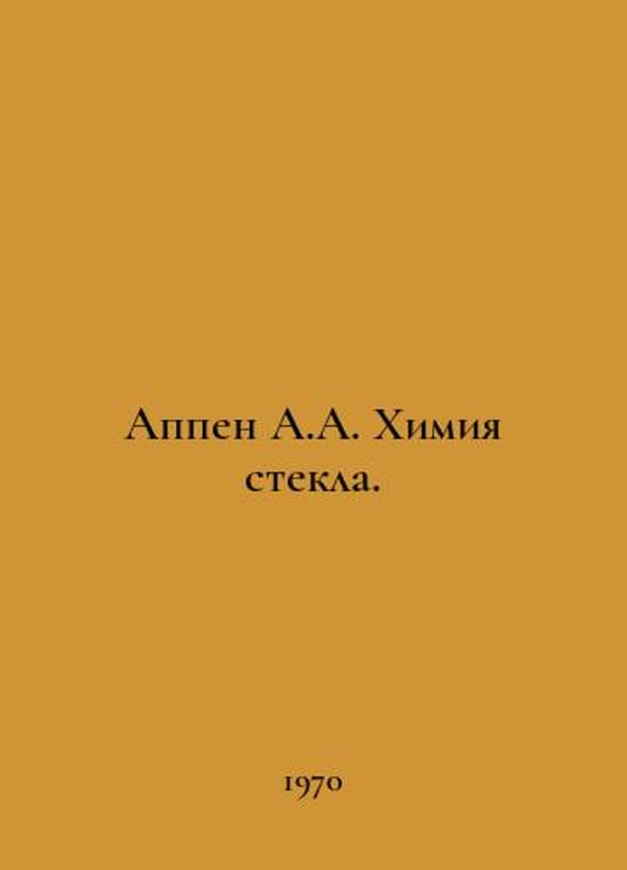Appen A.A. Glass chemistry. In Russian /Appen A.A. Khimiya stekla. L. Khimiya. 1970..You are welcome to reach out to us for a detailed description of the copies currently available. Delivery of this book may take longer than usual including extended processing and pre-shipping time, no expedited shipping is available. Please advise us if you have a set date or a deadline to receive your order. SKUalb58c7c89b72c004db