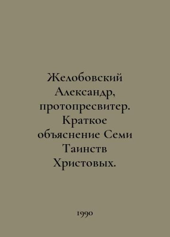 "Alexander Zhelobovsky, Protopresbyter. A Brief Explanation of the Seven Mysteries of Christ. In Russian /Zhelobovskiy Aleksandr, protopresviter. Kratkoe ob""yasnenie Semi Tainstv Khristovykh. The Teachings of the Spiritual Father to the Spiritual Children. Compiled by Protopresbyter of the Military and Marine Clergy, Alexander Zhelobovsky. Edition 3-Corrected. Melbourne, Australia: republished by Grigory Alexeevich Pavlov, 1990..You are welcome to reach out to us for a detailed description of the copies currently available. Delivery of this book may take longer than usual including extended processing and pre-shipping time, no expedited shipping is available. Please advise us if you have a set date or a deadline to receive your order. SKUalb590757f2da372133"