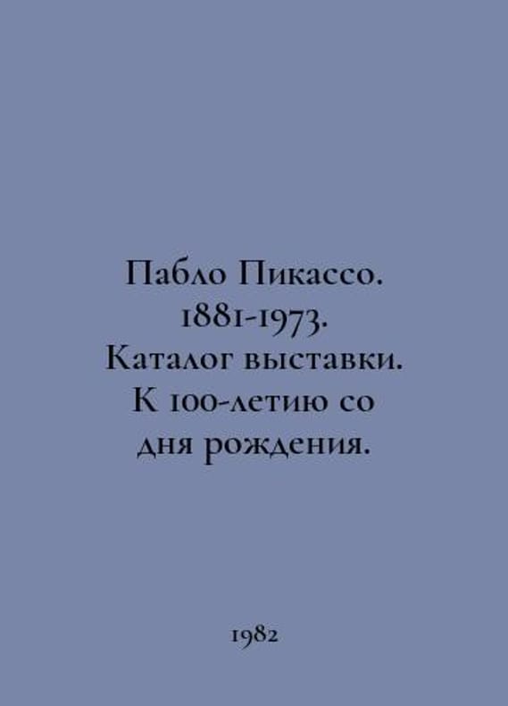 Pablo Picasso. 1881-1973. Catalogue of the exhibition. To the 100th anniversary of his birth. In Russian /Pablo Pikasso. 1881-1973. Katalog vystavki. K 100-letiyu so dnya rozhdeniya. L. Art 1982. You are welcome to reach out to us for a detailed description of the copies currently available. SKUalb5913d608d940267e.
