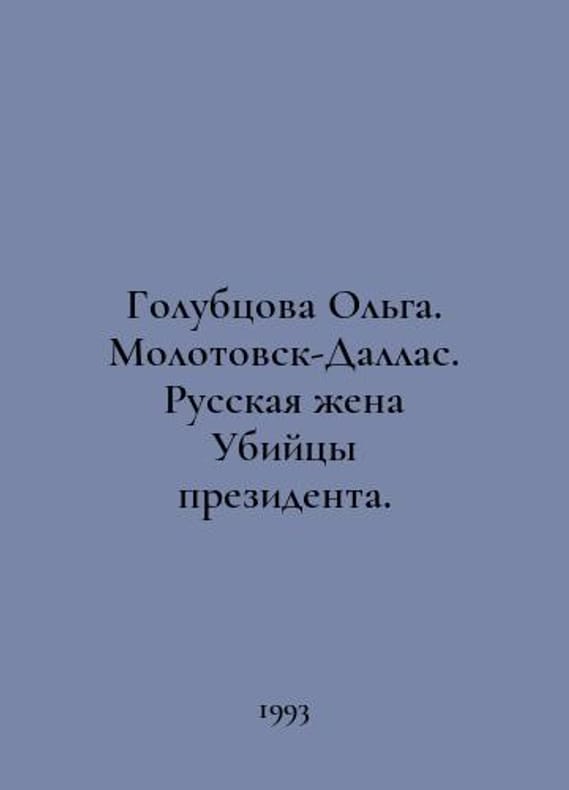 Golubtsova Olga. Molotovsk-Dallas. Russian wife of the Assassin of the President. In Russian /Golubtsova Olga. Molotovsk-Dallas. Russkaya zhena Ubiytsy prezidenta. Severodvinsk. 1993. You are welcome to reach out to us for a detailed description of the copies currently available. Delivery of this book may take longer than usual including extended processing and pre-shipping time, no expedited shipping is available. Please advise us if you have a set date or a deadline to receive your order.SKUalb5a659b5d65bf4554