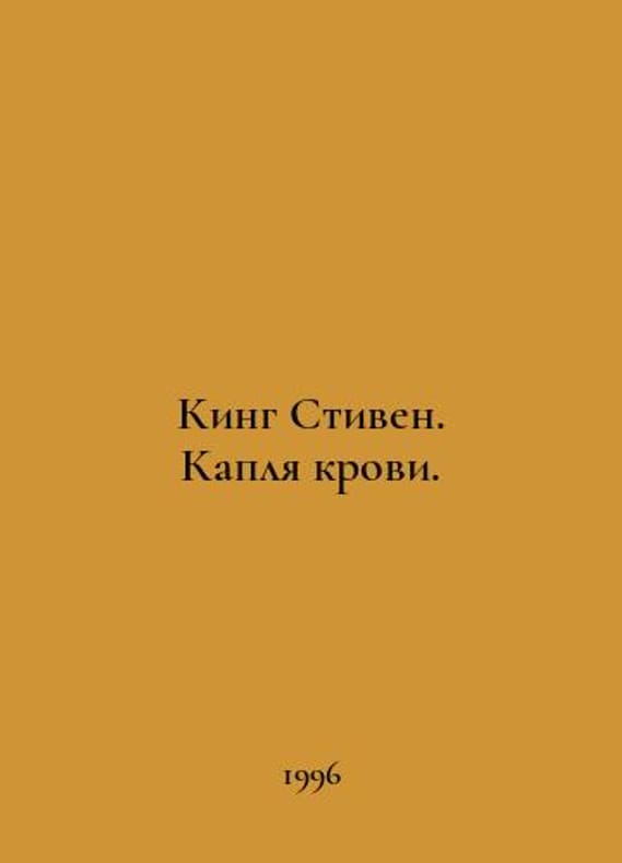 King Stephen. A drop of blood. In Russian /King Stiven. Kaplya krovi. Series: Masters of the witty mystique. Lions. Sigma (Cadman). 1996..You are welcome to reach out to us for a detailed description of the copies currently available. Delivery of this book may take longer than usual including extended processing and pre-shipping time, no expedited shipping is available. Please advise us if you have a set date or a deadline to receive your order. SKUalb5bda9aa537edec68