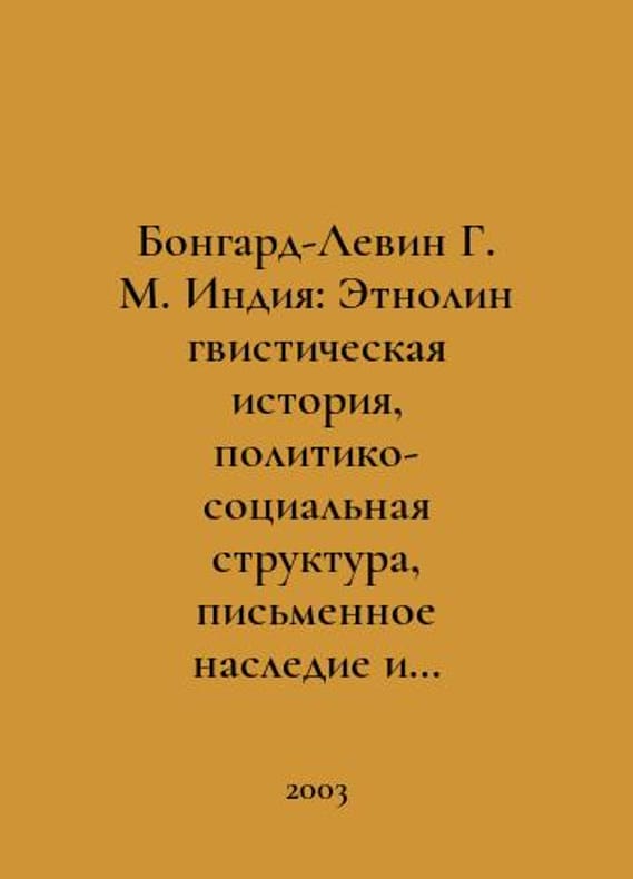 Bongard-Levin G. M. India: Ethno-linguistic history, political-social structure, written heritage and culture of antiquity. In Russian /Bongard-Levin G. M. Indiya: Etnolingvisticheskaya istoriya, politiko-sotsialnaya struktura, pismennoe nasledie i kultura drevnosti. M.: Science, 2003.You are welcome to reach out to us for a detailed description of the copies currently available. SKUalb5c39c1dfb38c5682.