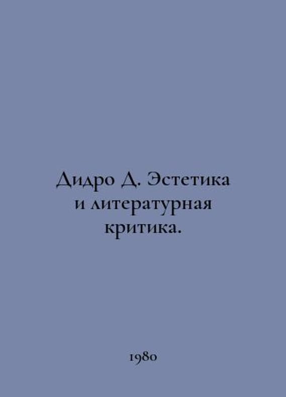 Didero D. Aesthetics and Literary Criticism. In Russian /Didro D. Estetika i literaturnaya kritika. M. Hood.lit. 1980. You are welcome to reach out to us for a detailed description of the copies currently available. Delivery of this book may take longer than usual including extended processing and pre-shipping time, no expedited shipping is available. Please advise us if you have a set date or a deadline to receive your order.SKUalb5c5d81c969662070