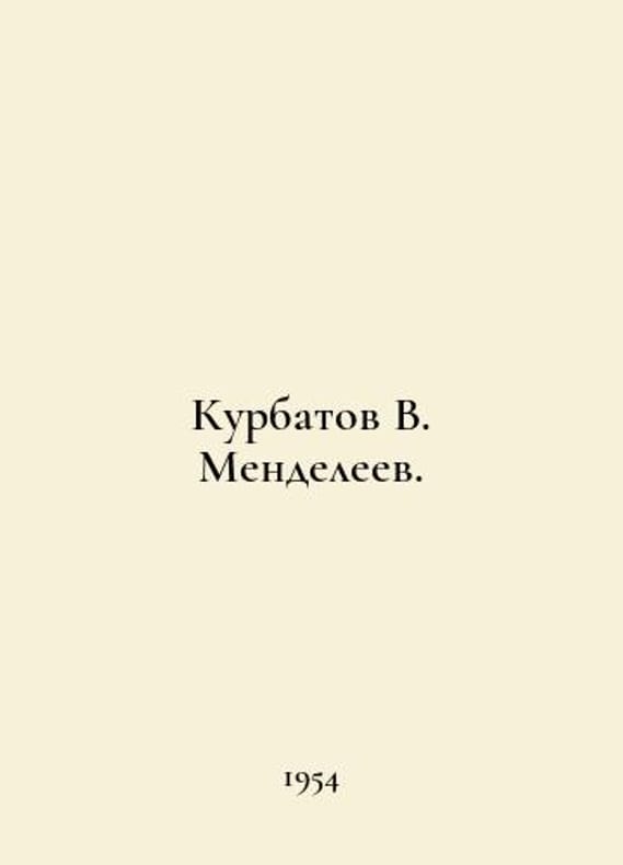 Kurbatov V. Mendeleev. In Russian /Kurbatov V. Mendeleev. Kurbatov V. Mendeleev. 1954.You are welcome to reach out to us for a detailed description of the copies currently available. Delivery of this book may take longer than usual including extended processing and pre-shipping time, no expedited shipping is available. Please advise us if you have a set date or a deadline to receive your order. SKUalb5fb371b0608b2b52