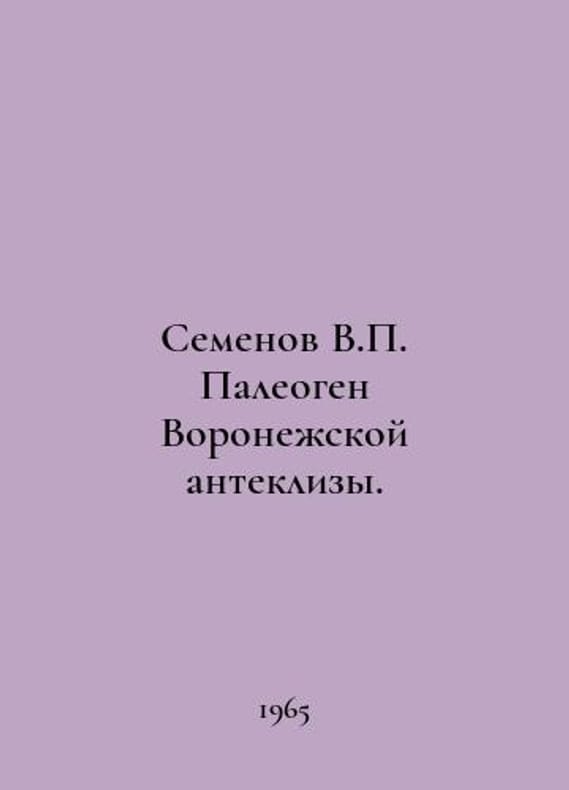 Semenov V. Paleogen Voronezh anteclises. In Russian /Semenov V. Paleogen Voronezhskoy anteklizy. Voronezh Publishing House of Voronezh University 1965..You are welcome to reach out to us for a detailed description of the copies currently available. Delivery of this book may take longer than usual including extended processing and pre-shipping time, no expedited shipping is available. Please advise us if you have a set date or a deadline to receive your order. SKUalb6045c81a6f3af083