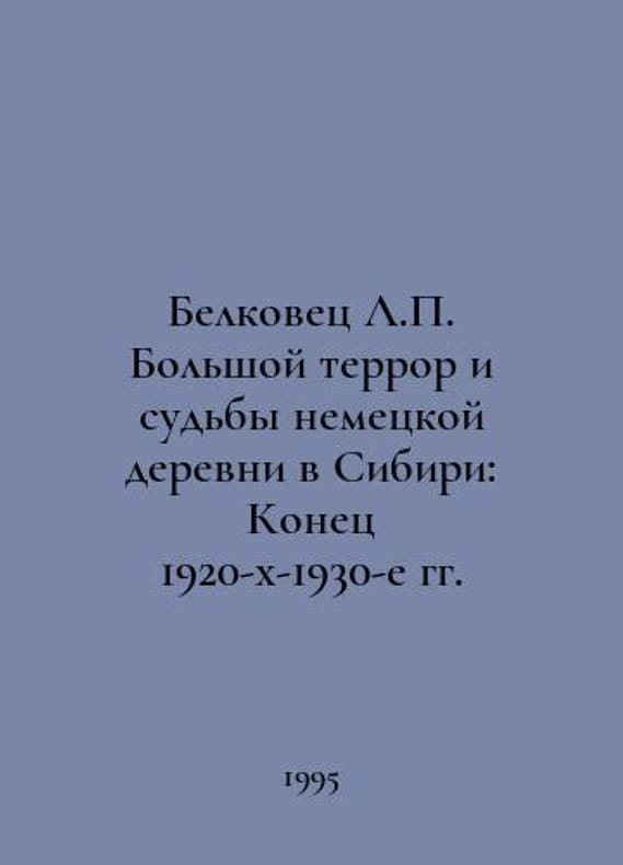 Belkovets L. The Great Terror and the Fates of a German Village in Siberia: The End of the 1920s-1930s In Russian /Belkovets L. Bolshoy terror i sudby nemetskoy derevni v Sibiri: Konets 1920-kh-1930-e gg. International Union of German Culture. M. IVDK 1995.You are welcome to reach out to us for a detailed description of the copies currently available. SKUalb61f8b4579a3d1f89.