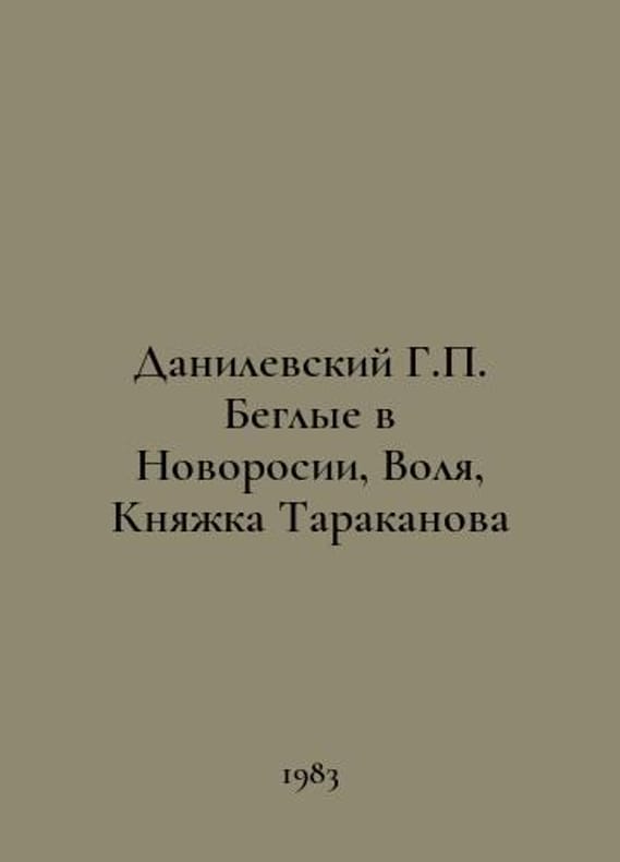 G. Danilevsky Fugitives in Novorossiya, Volya, Princess Tarakanova In Russian /Danilevskiy G. Beglye v Novorosii, Volya, Knyazhka Tarakanova M Truth 1983. You are welcome to reach out to us for a detailed description of the copies currently available. Delivery of this book may take longer than usual including extended processing and pre-shipping time, no expedited shipping is available. Please advise us if you have a set date or a deadline to receive your order.SKUalb65629e608e293a63