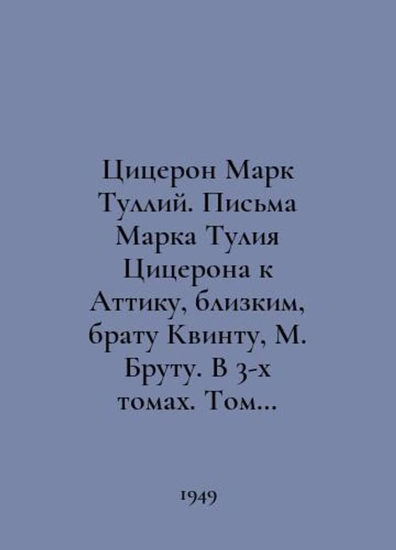 Cicero Mark Tullius. Mark Tulius Ciceros Letters to Atticus, to his loved ones, to Quintuss brother, M. Brutus. In 3 volumes. Volume 2. Letters 51-46. In Russian /Tsitseron Mark Tulliy. Pisma Marka Tuliya Tsitserona k Attiku, blizkim, bratu Kvintu, M. Brutu. V 3-kh tomakh. Tom 2. Pisma 51-46gg Series: Ancient Classics. Reproduction of the text of the 1949 edition. You are welcome to reach out to us for a detailed description of the copies currently available. Delivery of this book may take longer than usual including extended processing and pre-shipping time, no expedited shipping is available. Please advise us if you have a set date or a deadline to receive your order.SKUalb65f5d1ddc98b3922