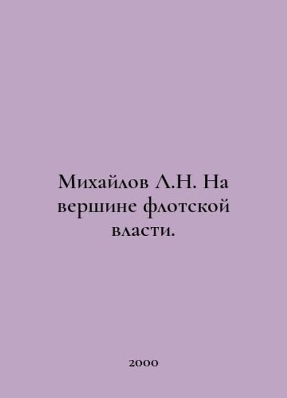 Mikhailov L.N. At the apex of naval power. In Russian /Mikhaylov L.N. Na vershine flotskoy vlasti. In Russian. Monograph. St. Petersburg. CSP Navy 2000. 452s. We have thousands of titles and often several copies of each title may be available. Please feel free to contact us for a detailed description of the copies available. SKUalb94f26c136a3ca4bc