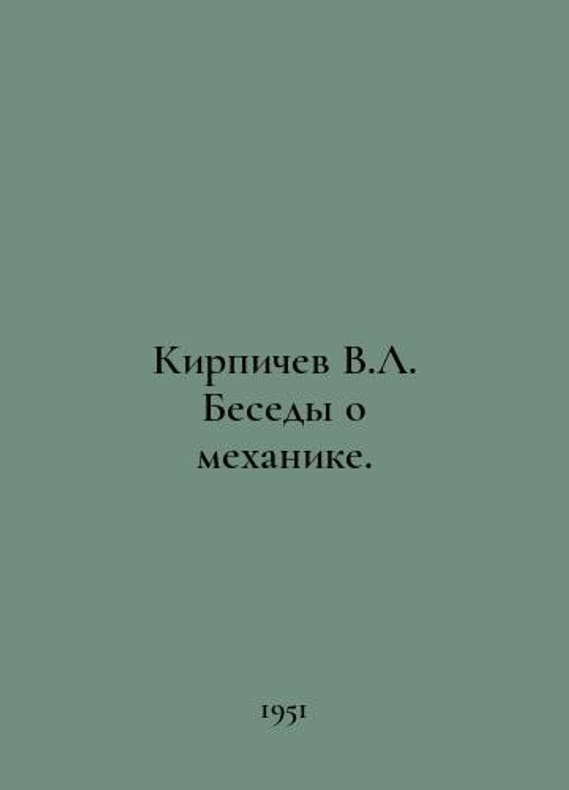 Brichev V.L. Conversations about mechanics. In Russian /Kirpichev V.L. Besedy o mekhanike. Publishing House of Technical and Theoretical Literature, 1951.You are welcome to reach out to us for a detailed description of the copies currently available. SKUalb678e0bf33a361c67.