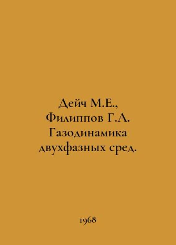Deutsch M.E., Filippov G.A. Gas dynamics of two-phase media. In Russian /Deych M.E., Filippov G.A. Gazodinamika dvukhfaznykh sred. M. Energia 1968.You are welcome to reach out to us for a detailed description of the copies currently available. SKUalb684a4fecac529418.