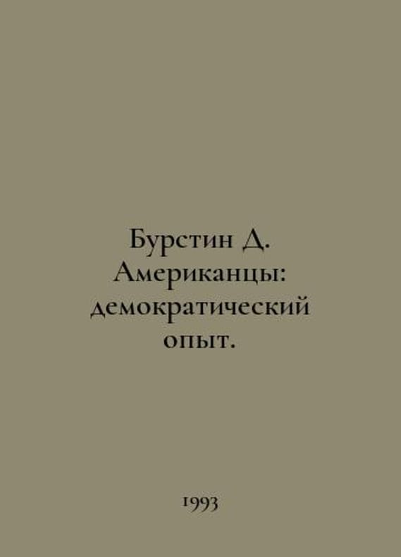 Burstyn D. The Americans: The Democratic Experience. In Russian /Burstin D. Amerikantsy: demokraticheskiy opyt. Translated from English by I. Bazileva, N. Bubnova, T. Shakleina, S. Korsunsky, N. Sorokina, T. Kuznetsova, A. Gorelova, M. Litvinova: poshl. V. Shestakov: edited and with a comment by V. T. Oleynik.You are welcome to reach out to us for a detailed description of the copies currently available. SKUalb689ac7c8427512b3.