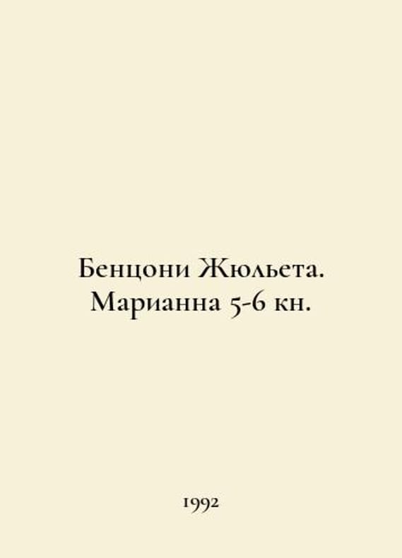 Benzoni Julieta. Marianne 5-6 book. In Russian /Bentsoni Zhyuleta. Marianna 5-6 kn. M Crown Press 1992. You are welcome to reach out to us for a detailed description of the copies currently available. Delivery of this book may take longer than usual including extended processing and pre-shipping time, no expedited shipping is available. Please advise us if you have a set date or a deadline to receive your order.SKUalb69c0fb05fa2bc2dd