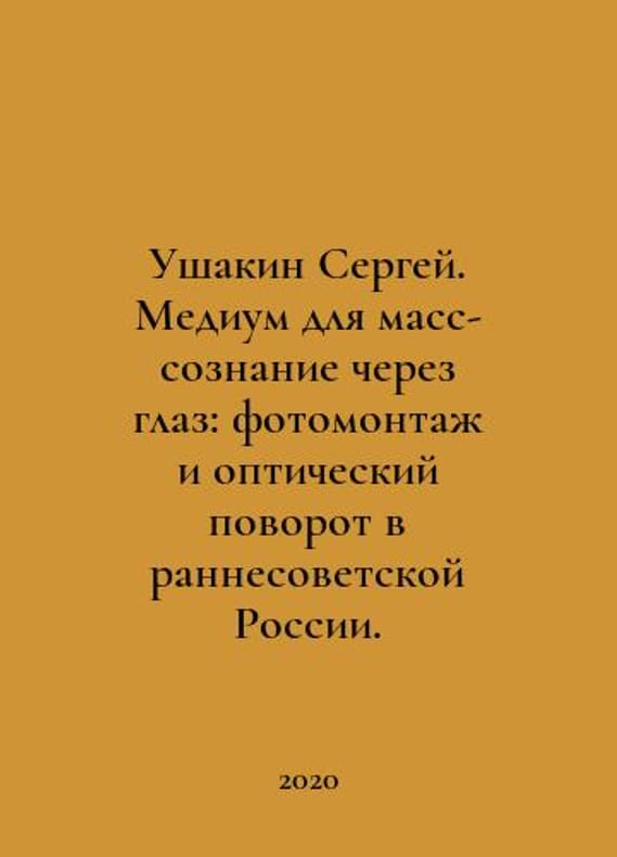 Ushakin Sergey. Medium for Mass Consciousness Through the Eye: Photomontage and Optical Turning in Early Soviet Russia. In Russian /Ushakin Sergey. Medium dlya mass-soznanie cherez glaz: fotomontazh i opticheskiy povorot v rannesovetskoy Rossii. M. Museum of Modern Art - Garage 2020. You are welcome to reach out to us for a detailed description of the copies currently available. Delivery of this book may take longer than usual including extended processing and pre-shipping time, no expedited shipping is available. Please advise us if you have a set date or a deadline to receive your order.SKUalb6b040d690c9787e0