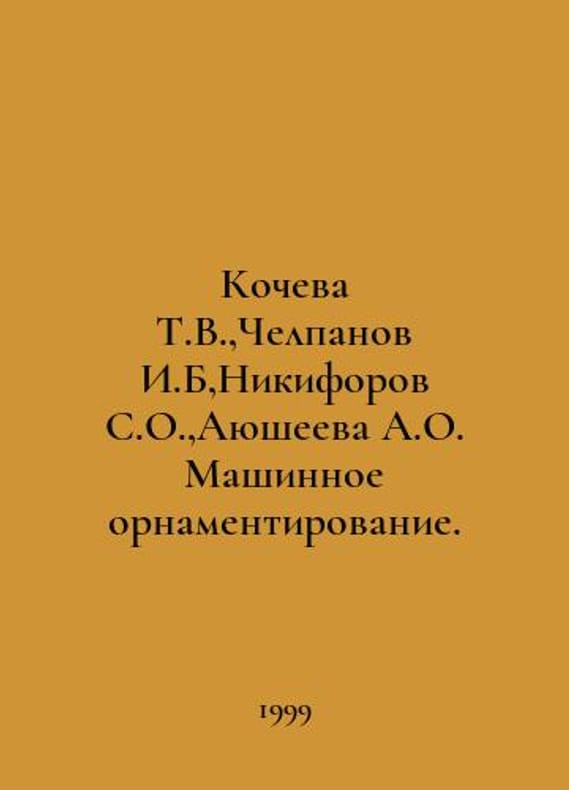 Kocheva T.V., Chelpanov I.B, Nikiforov S.O., Ayusheyeva A.O. Machine ornamentation. In Russian /Kocheva T.V., Chelpanov I.B,Nikiforov S.O., Ayusheeva A.O. Mashinnoe ornamentirovanie. Ulan-Ude. BNSC Siberian Branch RAS. 1999.You are welcome to reach out to us for a detailed description of the copies currently available. SKUalb6c0e8b00171a41a9.
