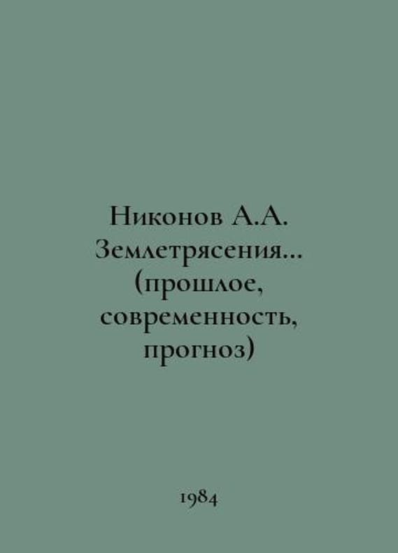 Nikonov A.A. Earthquakes (past, present, forecast) In Russian /Nikonov A.A. Zemletryaseniya (proshloe, sovremennost, prognoz) M Knowledge 1984..You are welcome to reach out to us for a detailed description of the copies currently available. Delivery of this book may take longer than usual including extended processing and pre-shipping time, no expedited shipping is available. Please advise us if you have a set date or a deadline to receive your order. SKUalb6ca6a1fa21823994