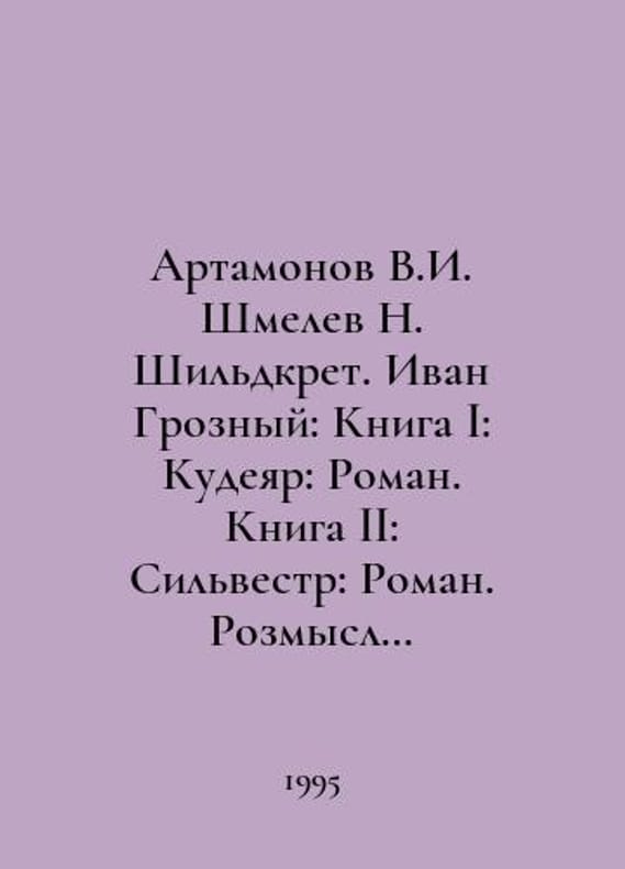 Artamonov V.I. Shmelev N. Shildkret. Ivan the Terrible: Book I: Kudeyar: Roman. Book II: Sylvester: Roman In Russian /Artamonov V.I. Shmelev N. Shildkret. Ivan Groznyy: Kniga I: Kudeyar: Roman. Kniga II: Silvestr: Roman. Rozmysl tsarya Ioanna Groznogo: Roman. Rurikovich series. Moscow: ARMADA 1995. You are welcome to reach out to us for a detailed description of the copies currently available. Delivery of this book may take longer than usual including extended processing and pre-shipping time, no expedited shipping is available. Please advise us if you have a set date or a deadline to receive your order.SKUalb6dc92b10b76184b5