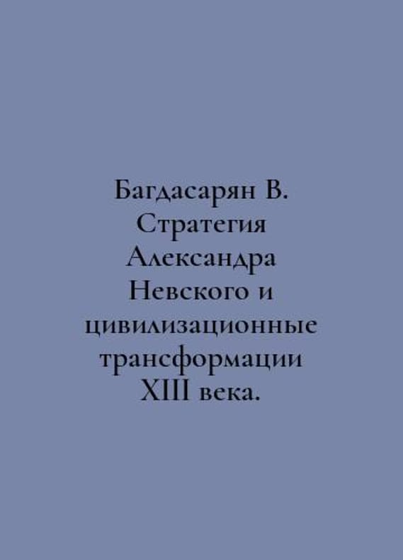 Baghdasarian V. Alexander Nevskys Strategy and the Civilization Transformations of the Thirteenth Century. In Russian /Bagdasaryan V. Strategiya Aleksandra Nevskogo i tsivilizatsionnye transformatsii XIII veka. M Foundation of the Apostle Andrei of the First Vostok 2022, 272 p. You are welcome to reach out to us for a detailed description of the copies currently available. Delivery of this book may take longer than usual including extended processing and pre-shipping time, no expedited shipping is available. Please advise us if you have a set date or a deadline to receive your order.SKUalb6e9c6443c03a3405