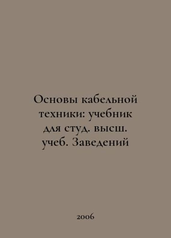 Basics of cable technology: a textbook for higher education students. Institutions In Russian /Osnovy kabelnoy tekhniki: uchebnik dlya stud. vyssh. ucheb. Zavedeniy For students of higher education, it may be useful for engineers and technicians in the cable and wire industry. Edited by I. B. Peshkov, M. Publishing Center, Academia 2006.You are welcome to reach out to us for a detailed description of the copies currently available. SKUalb70040e97b6402e9a.
