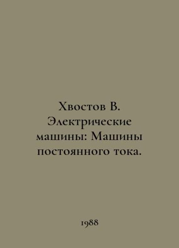 Tails B. Electric machinery: DC machines. In Russian /Khvostov V. Elektricheskie mashiny: Mashiny postoyannogo toka. Textbook M High School 1988.You are welcome to reach out to us for a detailed description of the copies currently available. SKUalb712b3f47fdb265b2.