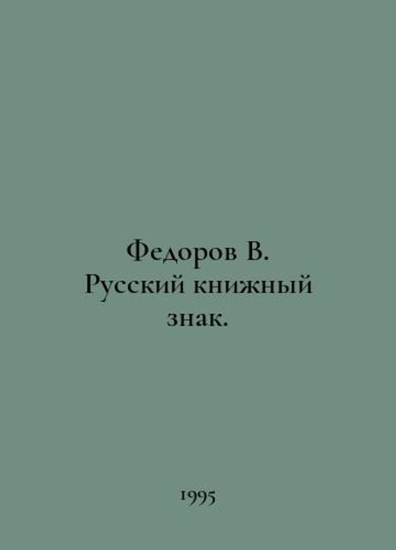 Fedorov V. Russian book sign. In Russian /Fedorov V. Russkiy knizhnyy znak. M. Biological Sciences. 1995.You are welcome to reach out to us for a detailed description of the copies currently available. SKUalb726f169d2843cac5.