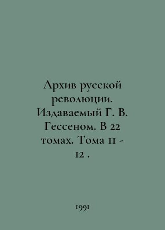 Archive of the Russian Revolution. Published by H.W. Hessen. In 22 volumes. Volumes 11-12. In Russian /Arkhiv russkoy revolyutsii. Izdavaemyy G. V. Gessenom. V 22 tomakh. Toma 11 - 12. Series: The Russian Archive. M. Terra - Politizdat. 1991. You are welcome to reach out to us for a detailed description of the copies currently available. Delivery of this book may take longer than usual including extended processing and pre-shipping time, no expedited shipping is available. Please advise us if you have a set date or a deadline to receive your order.SKUalb72fd44627f1774e6